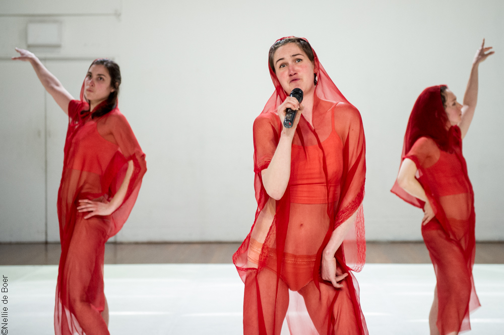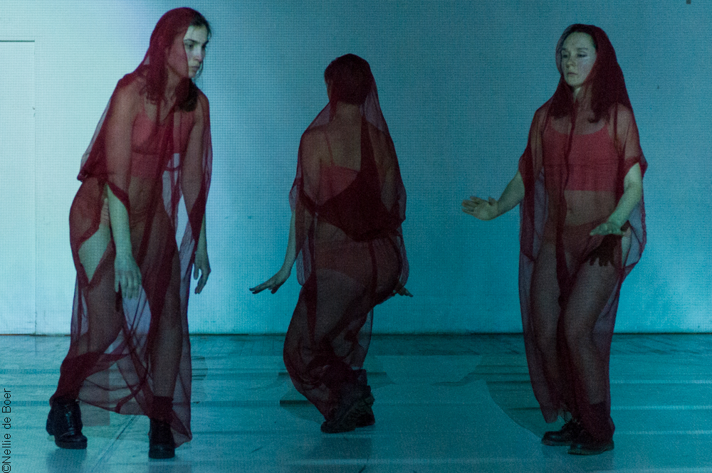 W3 by SonOfMom is the second part (Red) of a choreographic gesture which problematizes the current state of European democratic affairs and identity whilst projecting on archetypal constructs of a woman through the exposure of three artists? Women, Warriors, Witches? Alya Hessy, Isadora Tomasi and Tiana Hemlock are three artists carrying a story of birth, life and loss and destruction.