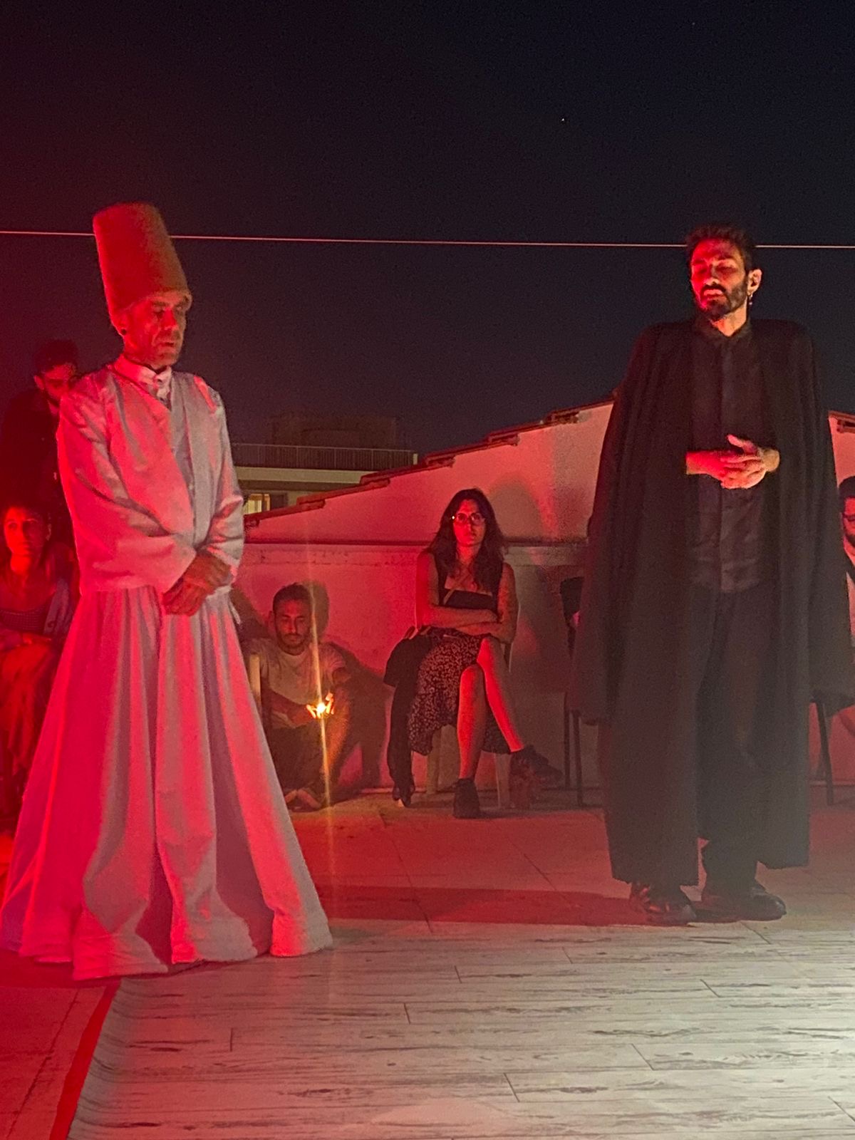 A Turkish Cypriot dervish dancer @dervishzeybek , performer and choreographer meets a Greek Cypriot (Marios Ktoridis) choreographer. The time and space they meet is pivotal. August 2024, the war in Gaza and West Bank is well established and expanding across the region. What else could we talk about given our own country’s/ island’s history?